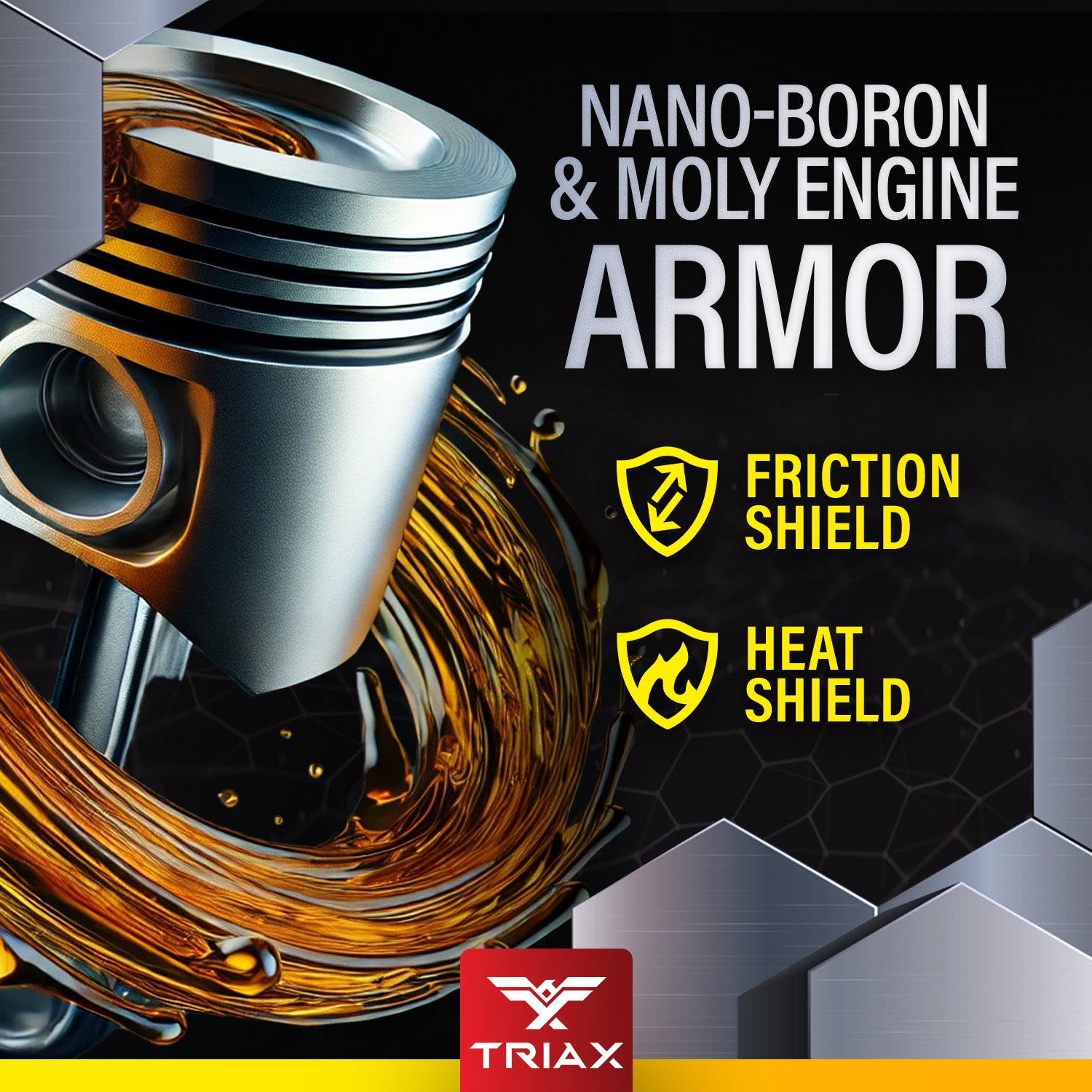TRIAX Synergy SRT engine oils are full synthetic, friction modified, state-of-the-art, engine oils, designed maximize wear protection and engine longevity. These oils are engineered with a lower friction coefficient than most other lubricants and are tailored to exceed the highest expectations from professional mechanics and consumers alike. They are fully formulated and exceed API and OEM standards, such as Ford, Honda, Chrysler, Jeep, Chevy, and General Motors Dexos 1 Gen 3 ®.