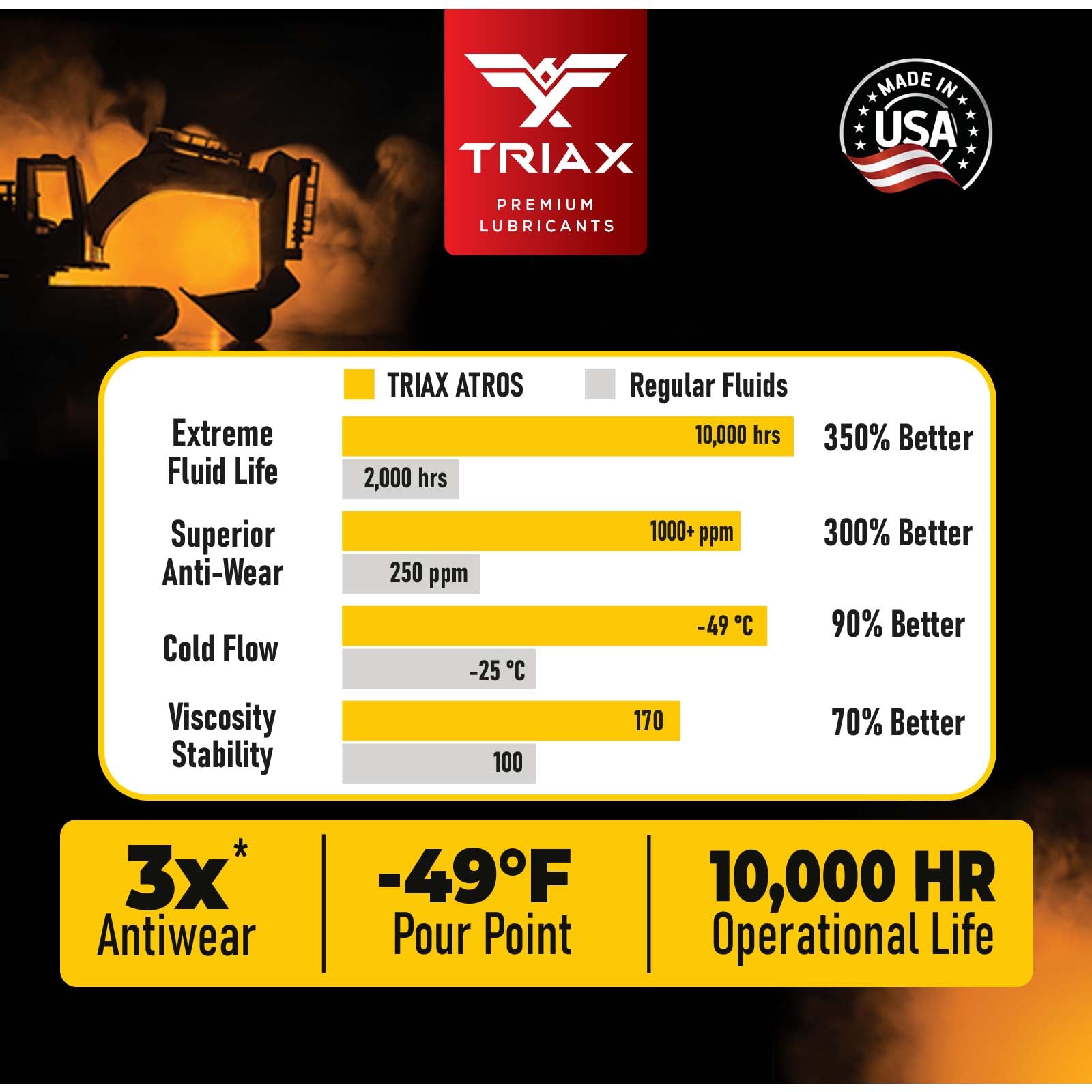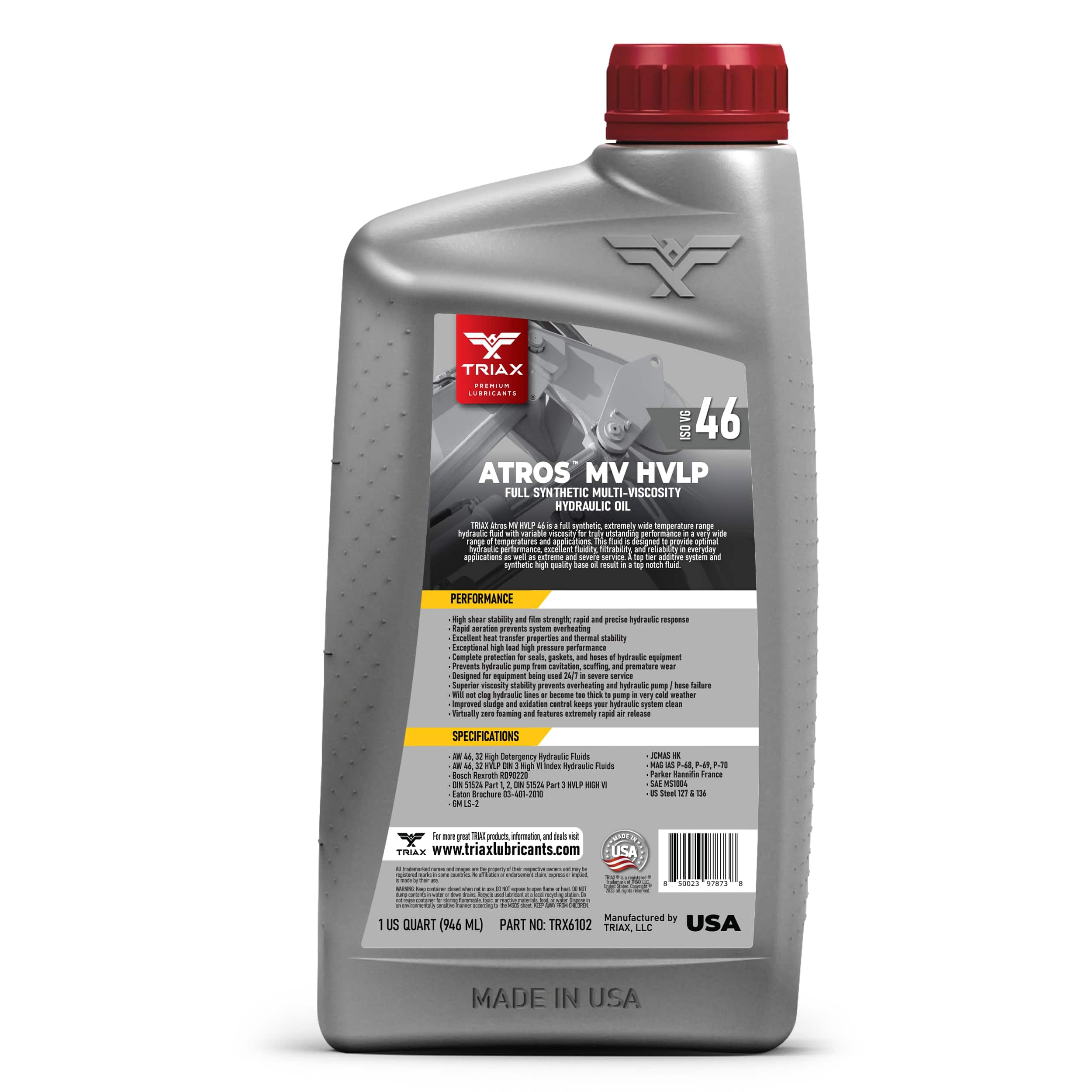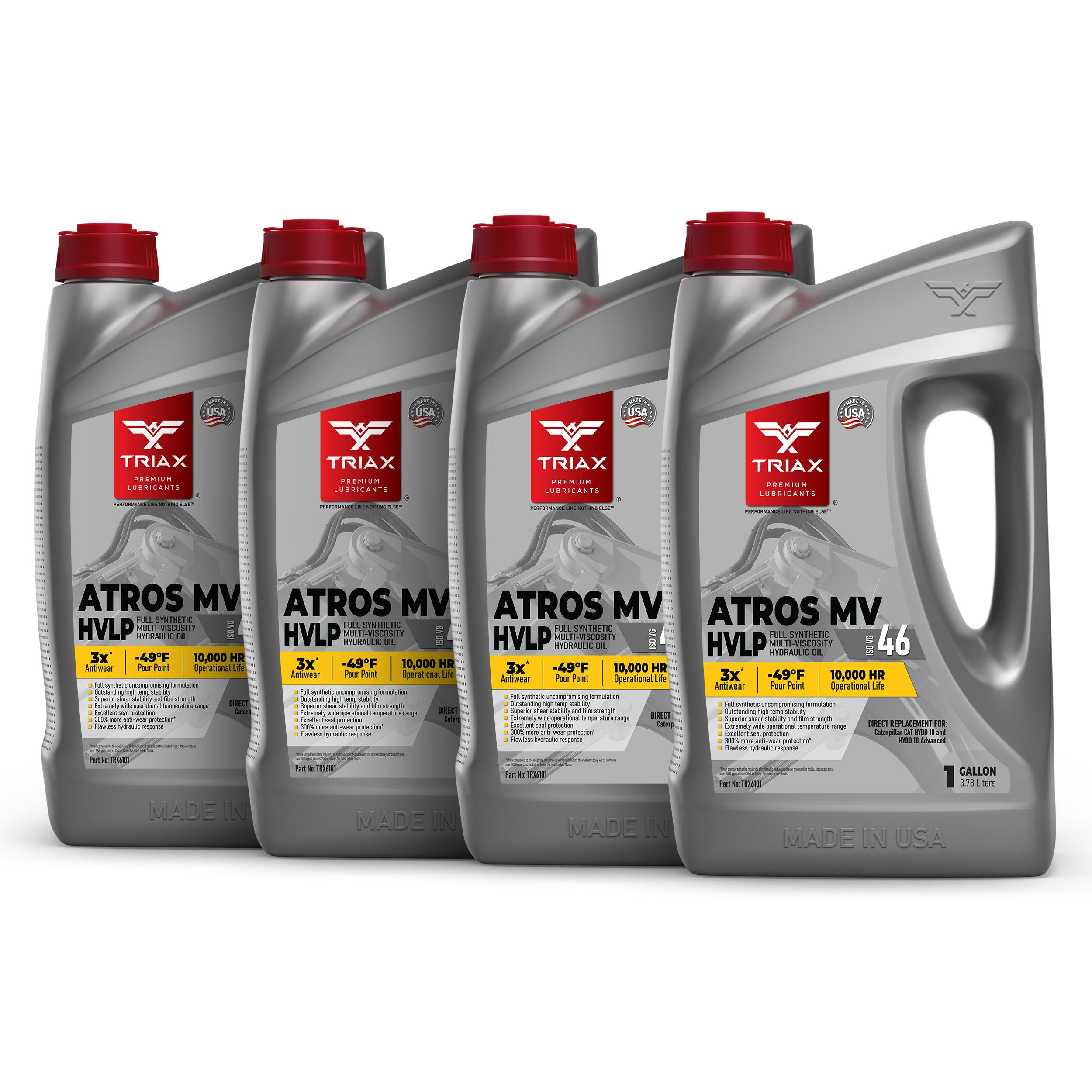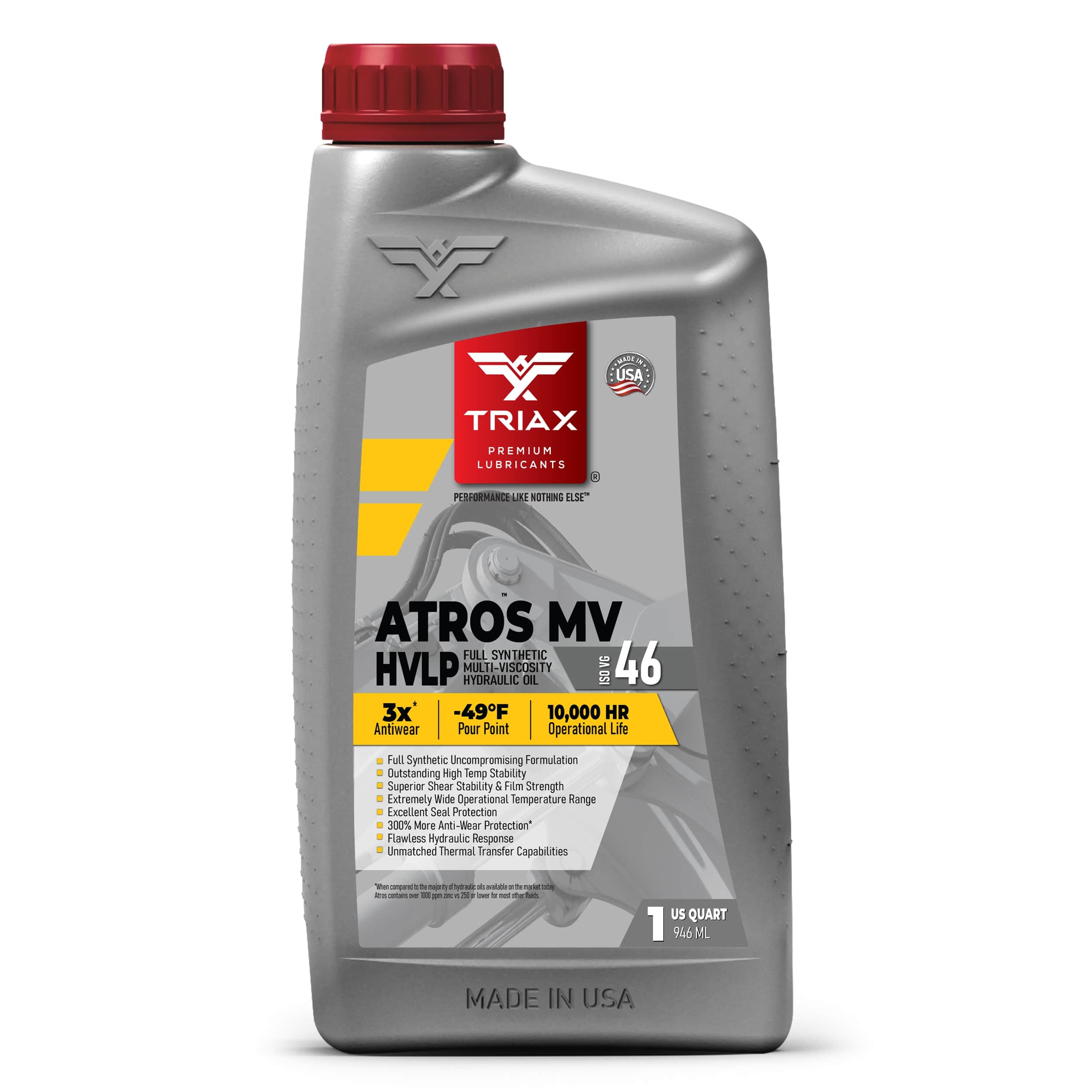 TRIAX ATROS MV HVLP is a full synthetic hydraulic fluid designed for peak performance in extreme and demanding conditions. It delivers exceptional stability and protection, formulated with high-quality base oils and a cutting-edge additive system. Featuring a very high viscosity index (VI) and exceptionally low pour points, it excels in high-grade industrial applications and operations in extreme temperatures, from arctic cold to intense heat. Designed to maintain full operational capacity for extended periods, these fluids ensure that equipment remains safe and functional without significant loss of viscosity or lubricating properties. It is suitable for ISO VG 46 or 68 applications and is classified as an HVLP hydraulic fluid.
