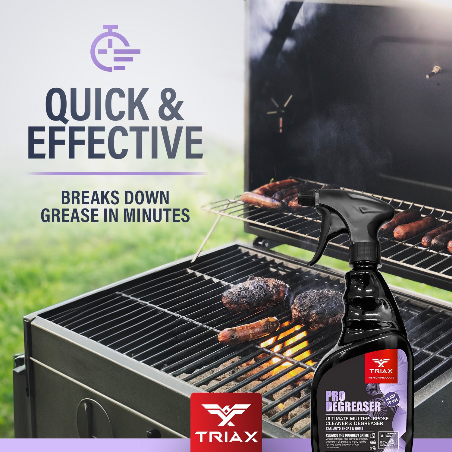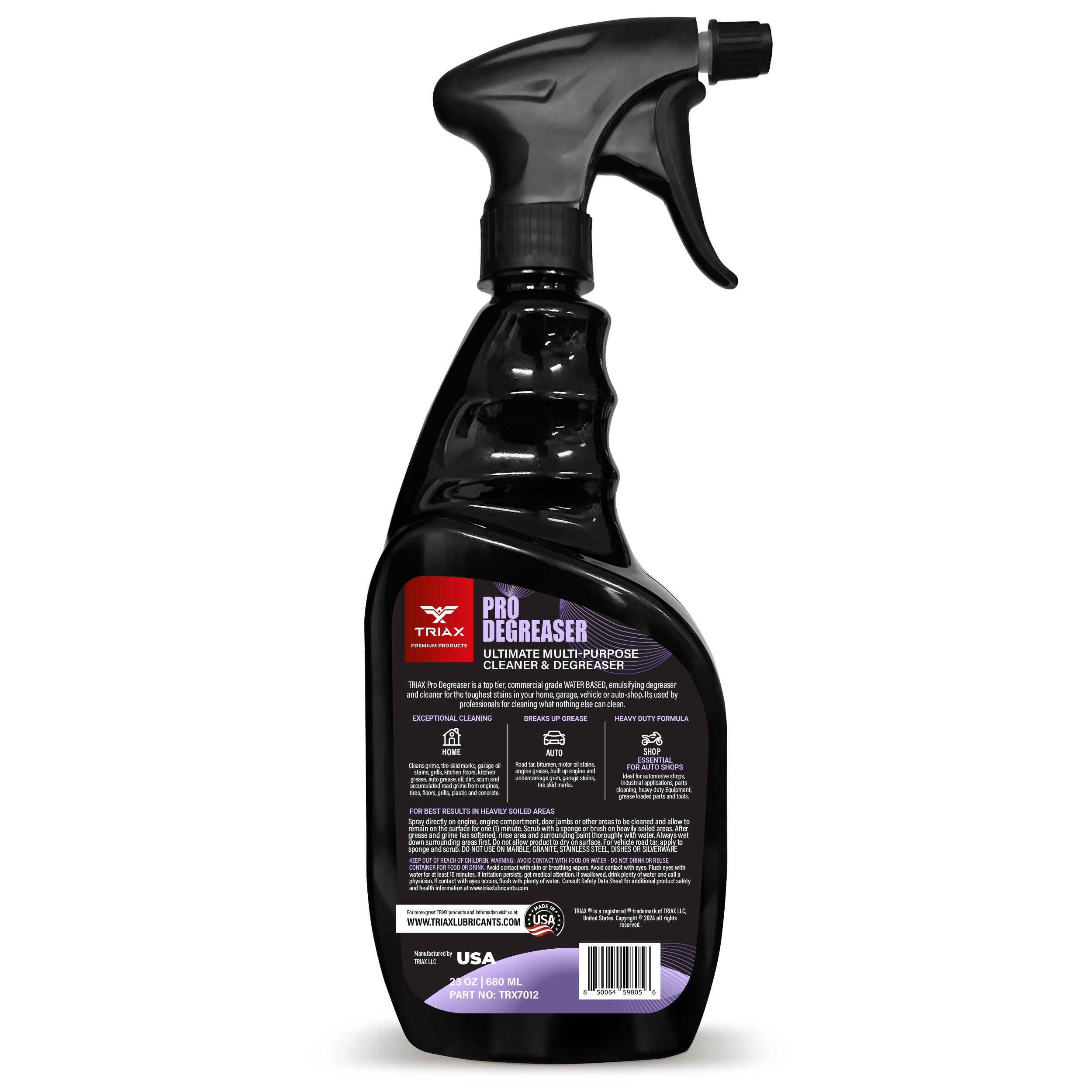 Triax Pro Degreaser is a 100% Bio-Degradable, exceptional quality, commercial grade WATER BASED, emulsifying degreaser and cleaner for toughest grime in your home, garage, vehicle, or auto-shop. It is used by professionals for cleaning what nothing else can clean.
