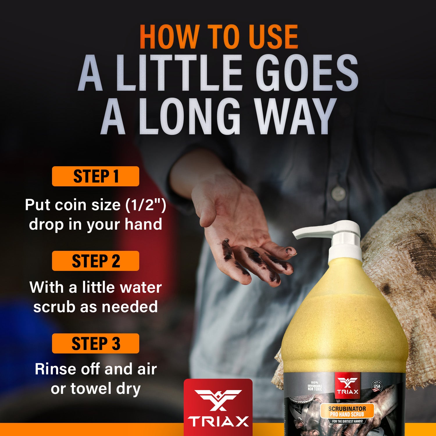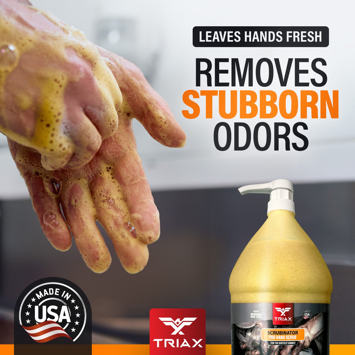 TRIAX Scrubinator hand scrub cleaner is your ultimate solution for removing tough dirt, grease, and grime. Made with a biodegradable, non-toxic formula, it delivers powerful cleaning without drying your hands. This gentle scrub deeply cleanses while moisturizing, leaving your skin soft and hydrated. Perfect for frequent use, it’s ideal for anyone who needs an eco-friendly, effective hand cleaner for daily messes. It combines unbeatable cleaning power with skin protection for all skin types.