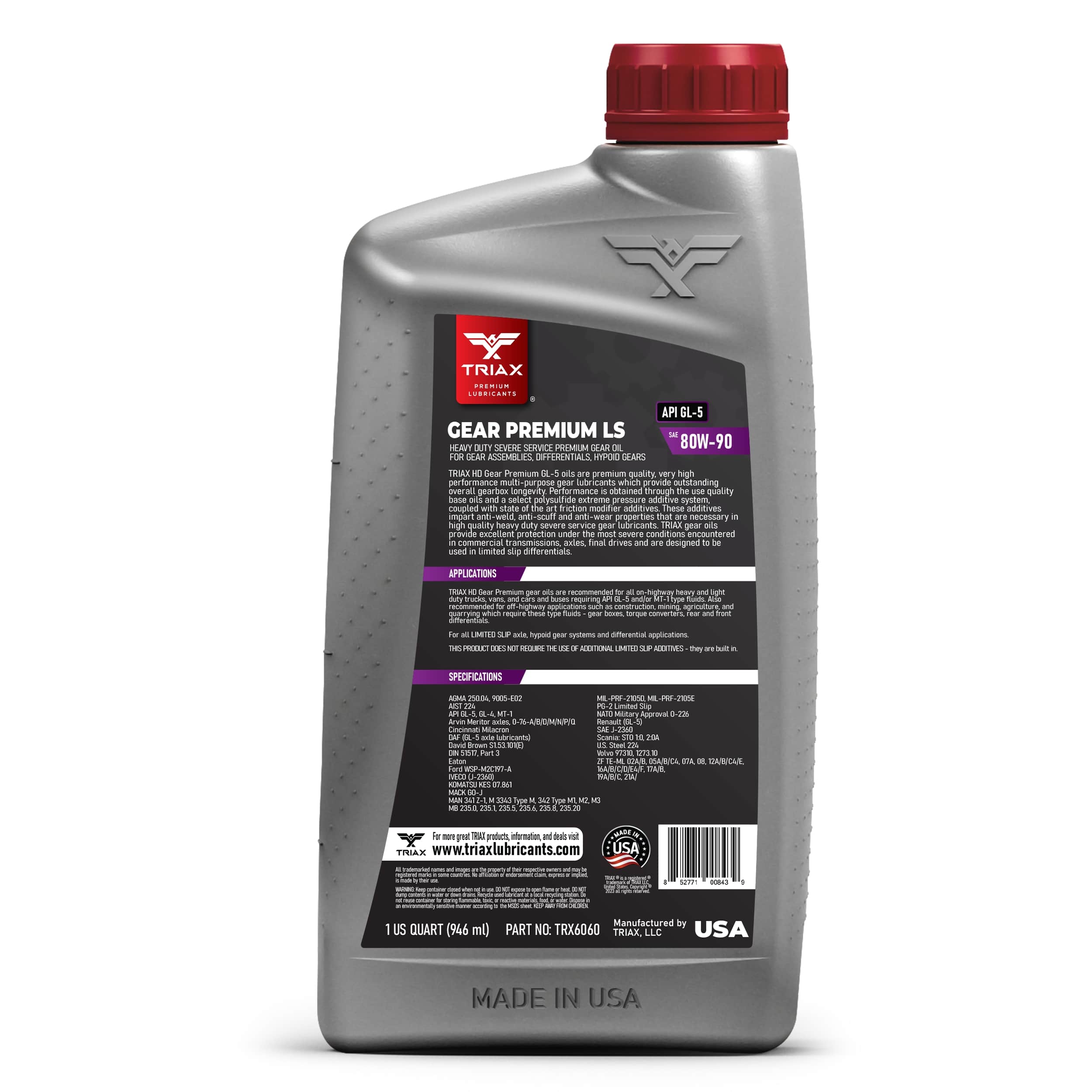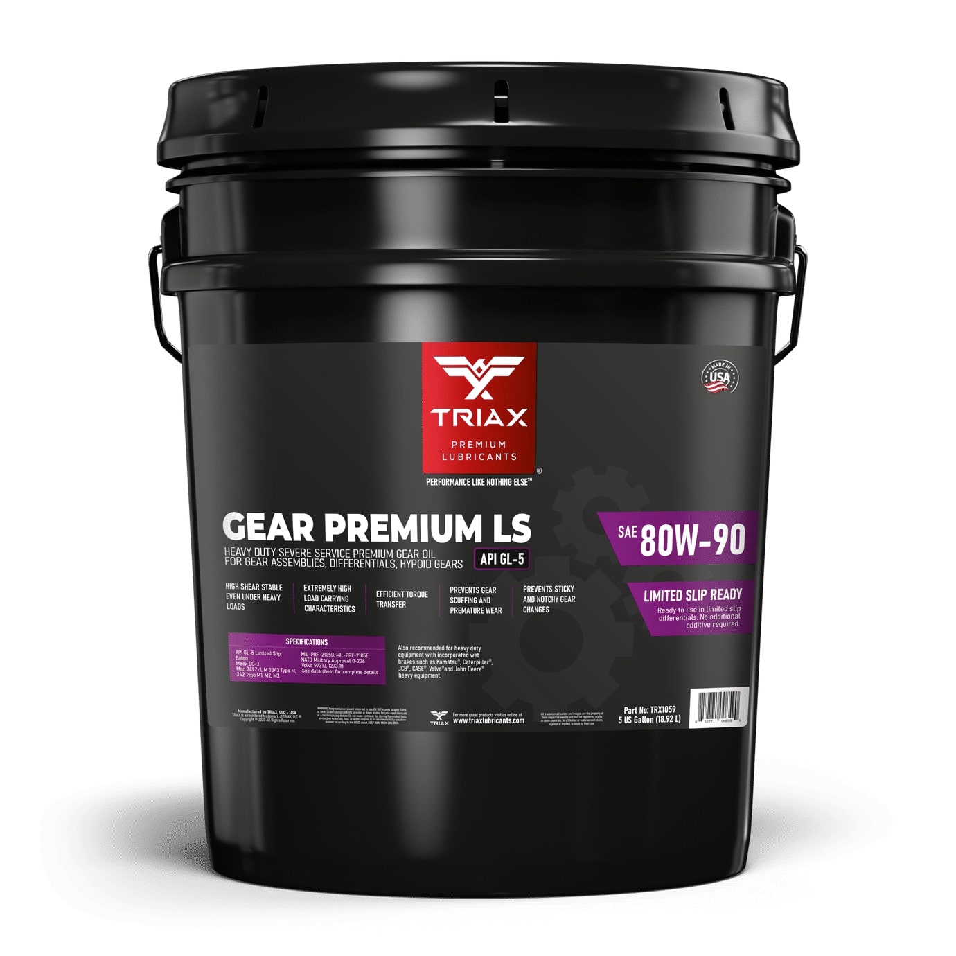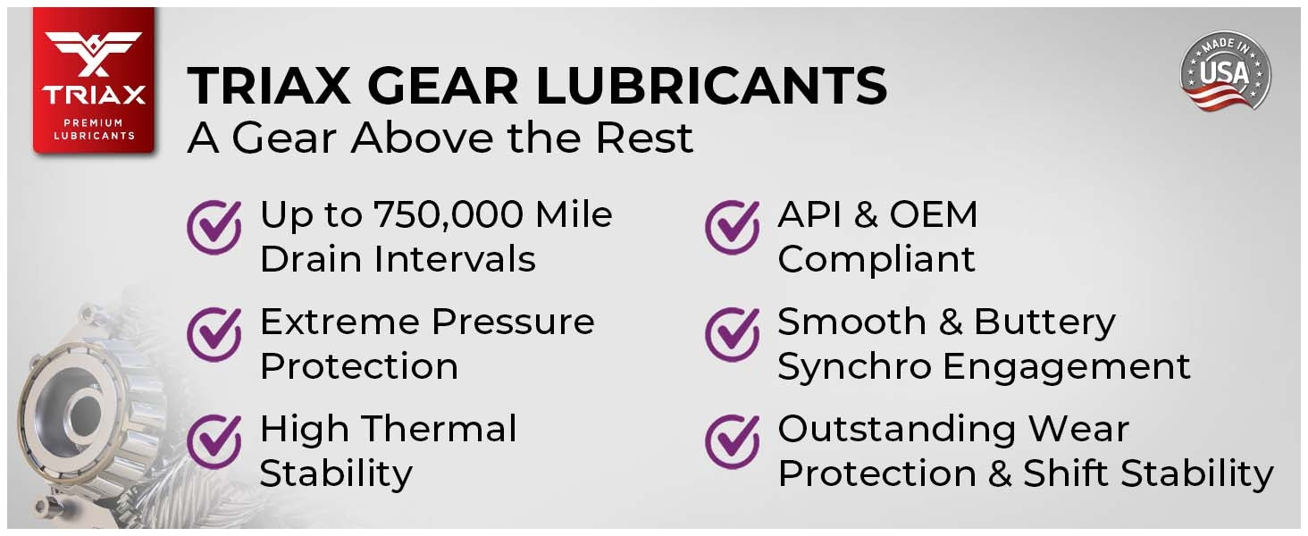 TRIAX HD Gear Premium GL-5 oils are premium quality, very high performance multi-purpose gear lubricants. They provide outstanding overall gearbox longevity, impart anti-weld, anti-scuff and anti-wear properties that are necessary in high quality heavy duty severe service applications. TRIAX gear oils provide excellent protection under the most severe conditions encountered in commercial transmissions, axles, final drives and are designed to be used in limited slip differentials. TRIAX HD Gear Oils are highly resistant to shear degradation, facilitating very long fluid and transmission life.