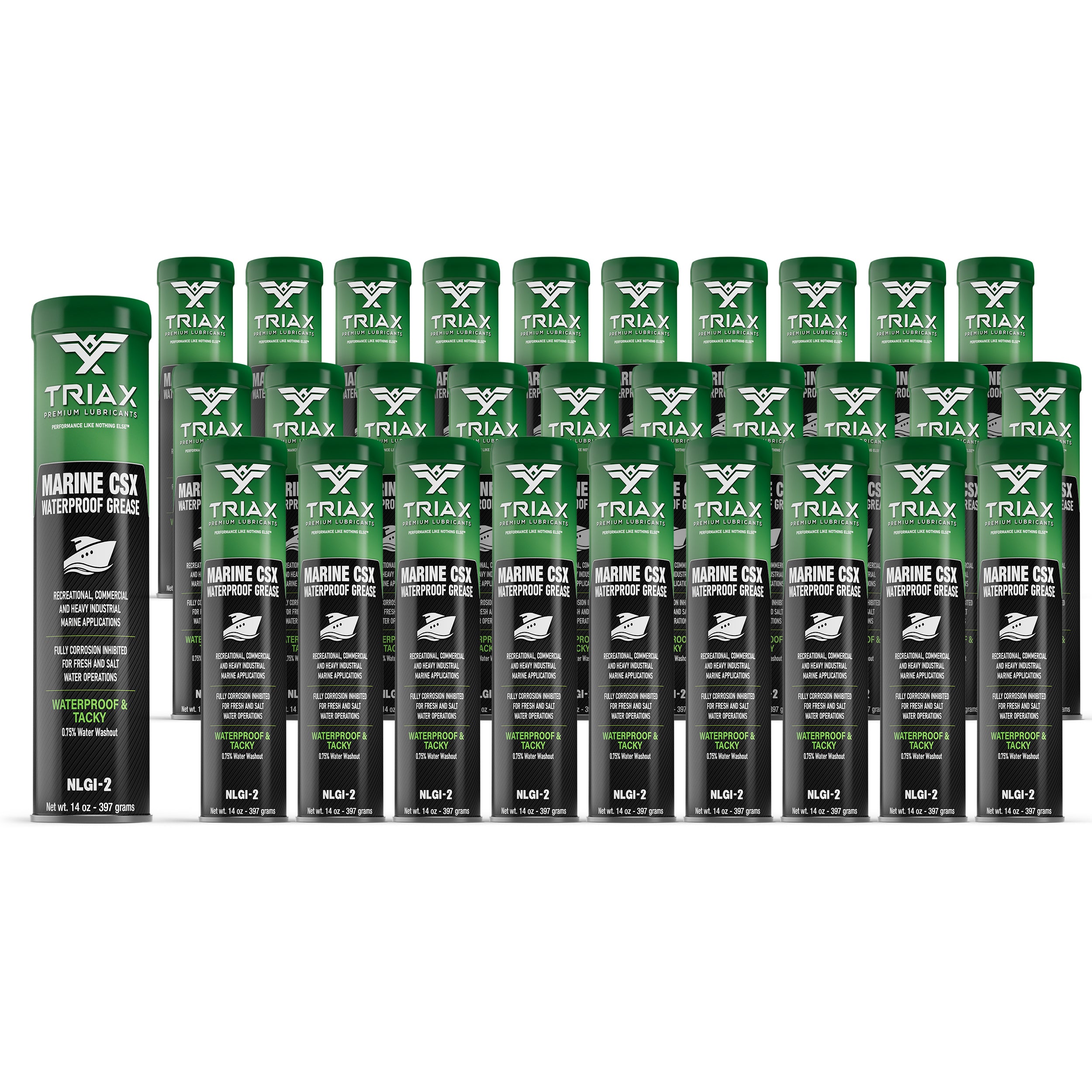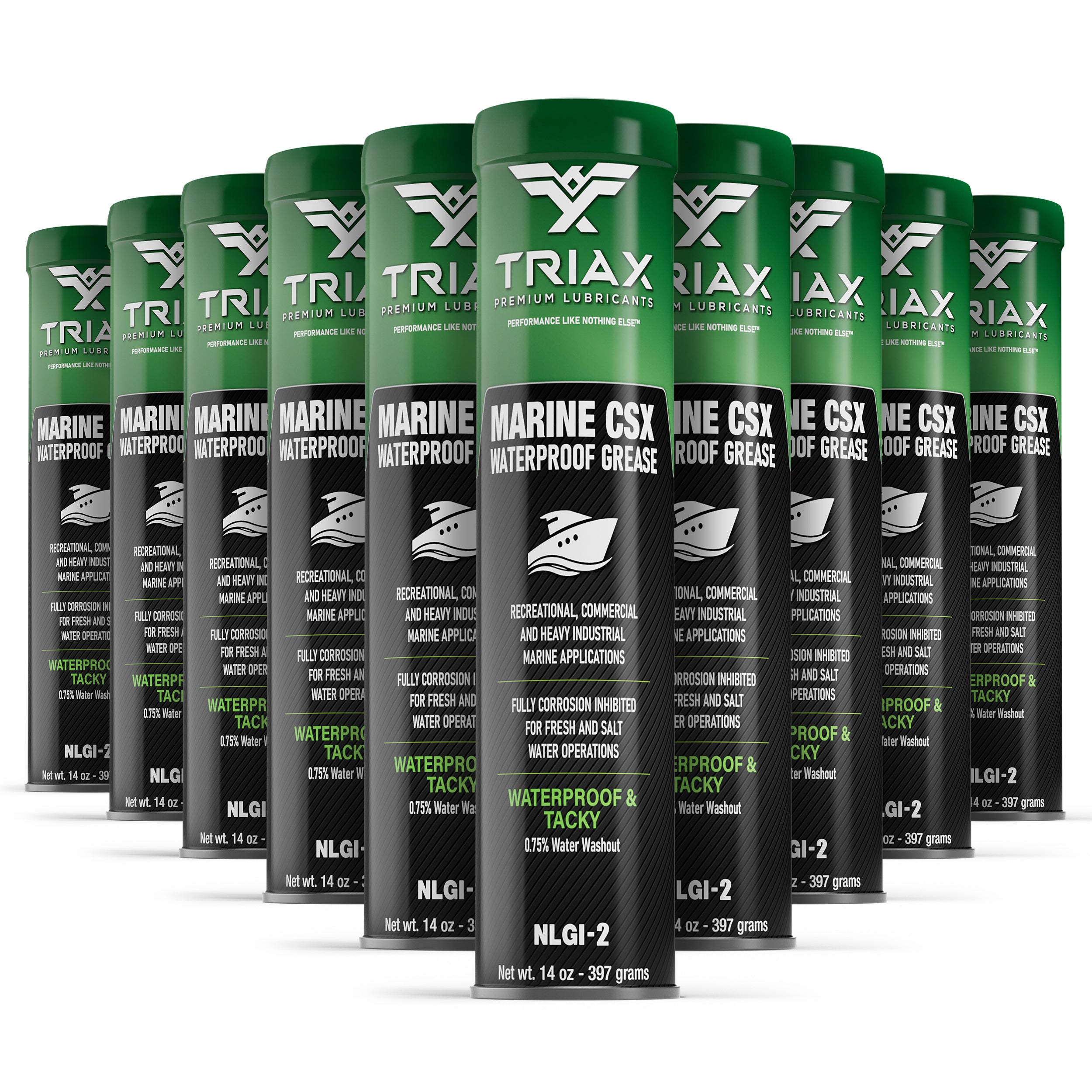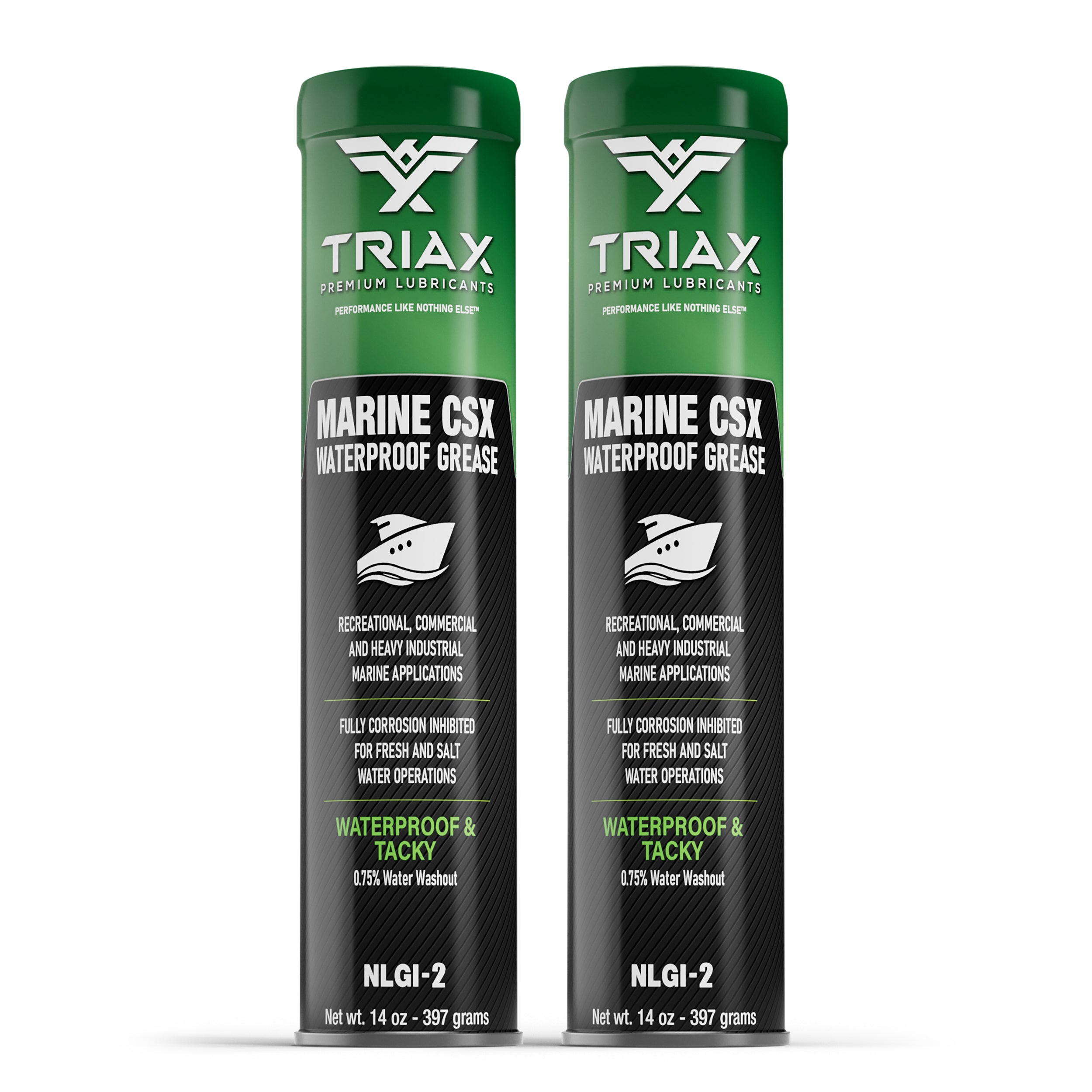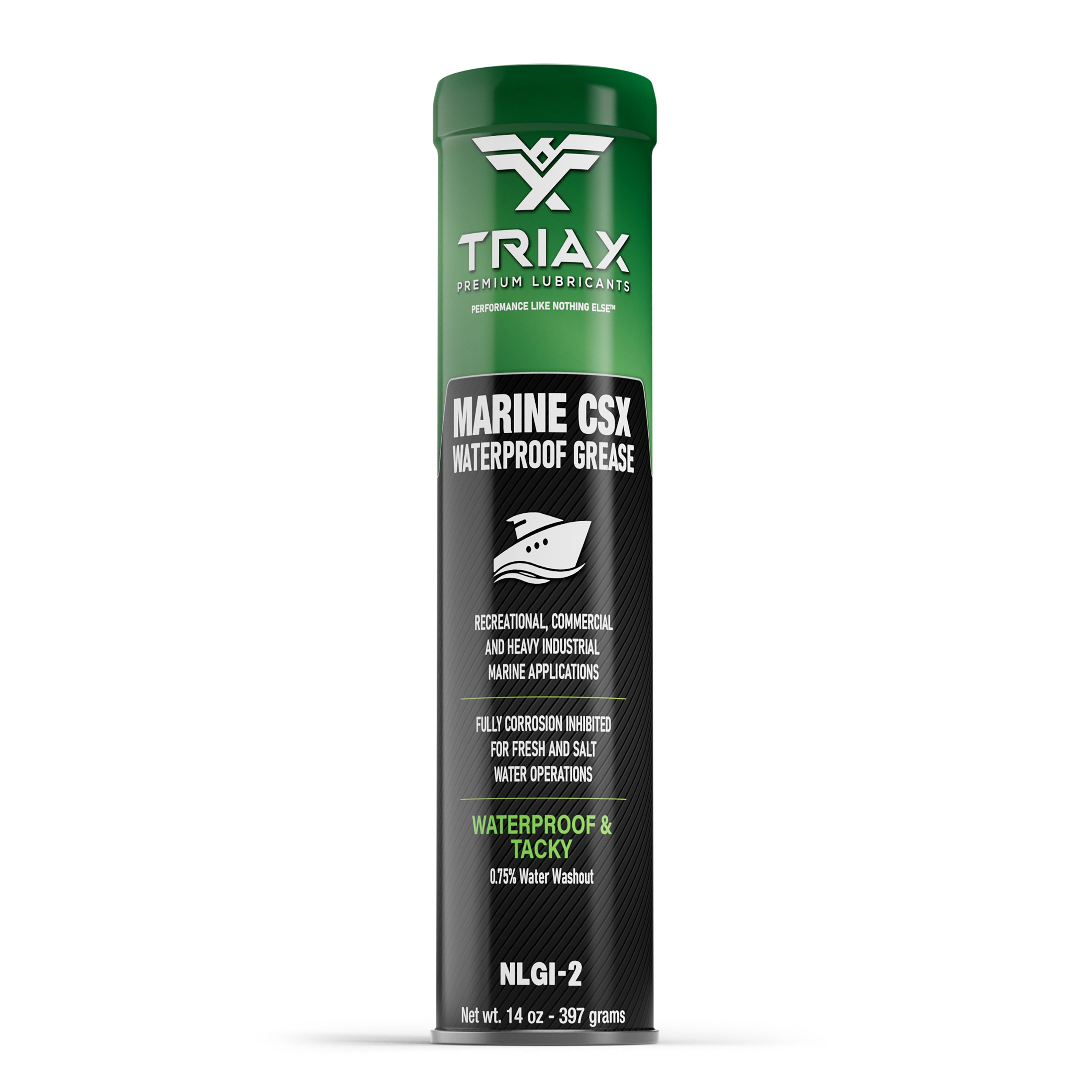 TRIAX MARINE CSX GREASE is a synthetic, waterproof, marine grease for demanding marine applications of all kinds. It offers exceptional corrosion protection in both salt and fresh water. High EP load rating, exceptionally low wear and very high adhesion, makes TRIAX Marine CSX Grease an ideal product for in all types of marine equipment in pivots, joints, chains, bearings and other sliding or rotating parts that frequently come in contact with water or are in continuous use in wet applications.