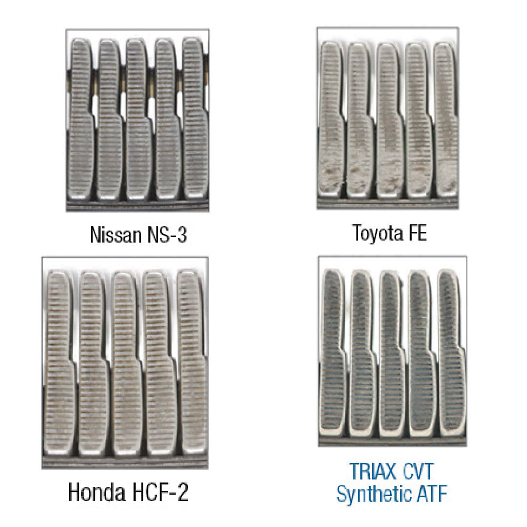 TRIAX CVT Fluid wear analysis of the belt and pulleys systems in major OEM CVT transmissions shows our fluid has superior metal-to-metal wear protection compared to commercially available OEM oils.