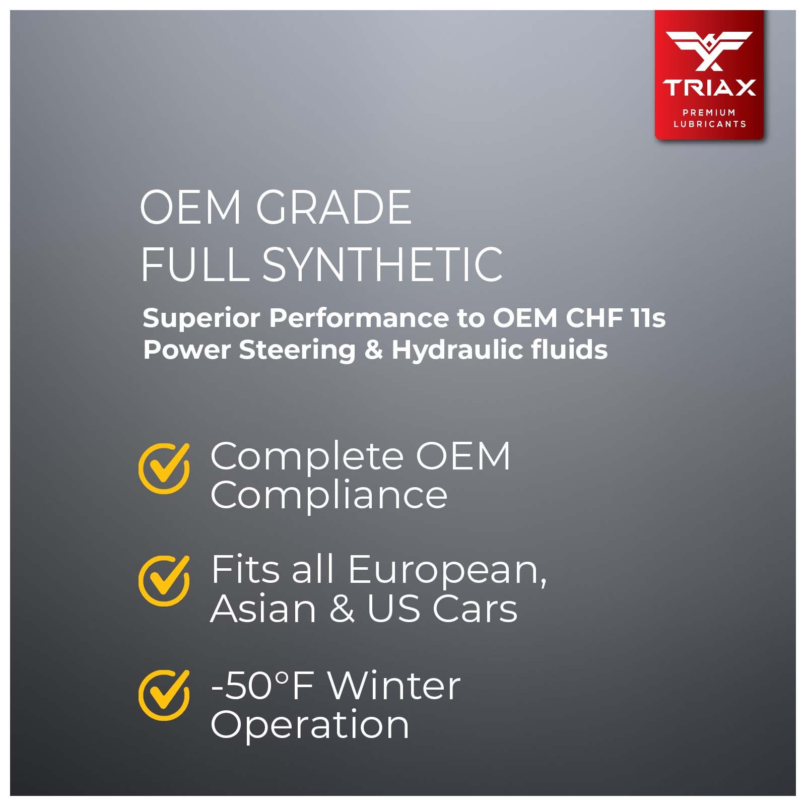 TRIAX Powerfluid 450 is compatible with nearly all vehicles, including late generation European cars, such as BMW, Audi, VW, Mercedes Benz, Bentley, etc. It contains state-of-the-art corrosion inhibitors, de-foamers, advanced detergent, and viscosity stability additives to surpass OEM performance requirements.