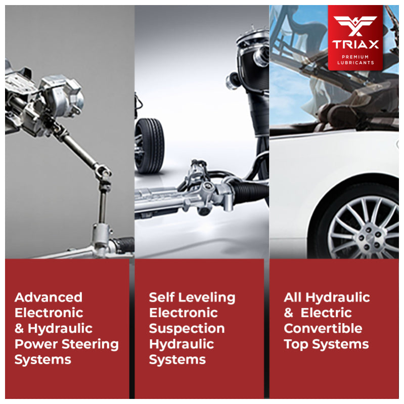 TRIAX Powerfluid 450 is an OEM grade full synthetic, PAO/ester blended fluid designed for modern vehicle power steering fluids, hydraulic suspensions, self leveling suspensions as well as multiple other applications in modern vehicle hydraulic systems. This product is manufactured to provide outstanding hydraulic response, excellent low temperature performance, wide ranging seal protection, and lifetime fill oxidation stability and complete OEM specification coverage.