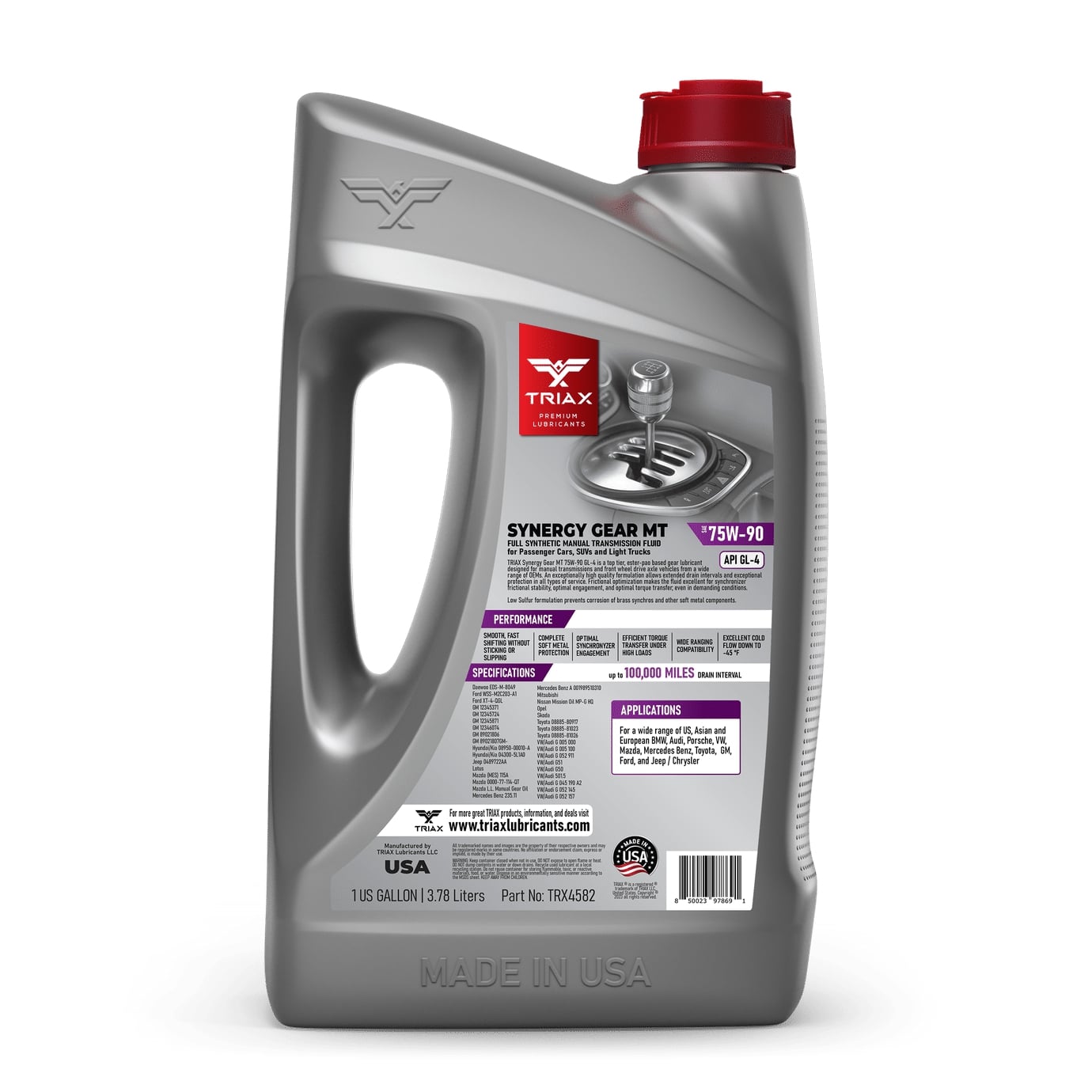 TRIAX Synergy Gear MT 75W-90 GL-4 is a full synthetic, long drain, manual transmission and gear lubricant. It is optimally balanced for improved friction control, wear reduction, thermal stability, shear stability, rust and corrosion inhibition, and seal protection. Exceeds specification requirements for a wide range of manual transmissions. with It provides excellent yellow metal protection for brass synchros and exceptional frictional stability, permitting rapid transmission response, fast & smooth shifting, with no notchy hesitations or slipping.